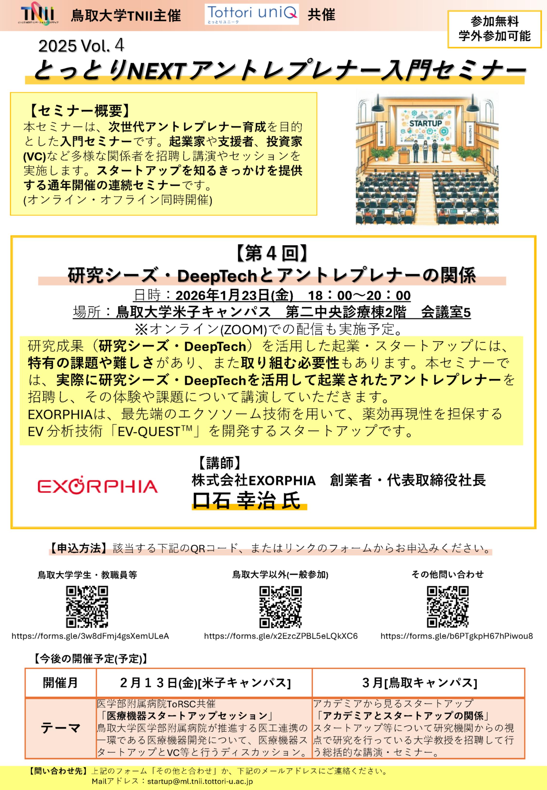 (キャリア開発・育成コンテンツ)第4回「とっとりNEXTアントレプレナー入門セミナー」の開催について